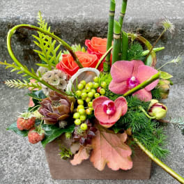 We create works of floral art using a carefully curated selection premium flowers with an emphasis on locally grown and foraged items, supplemented by cuttings from our little urban flower farm. Delivery is available from Olympia to Everett. If it is after the cut-off for same-day delivery, please give us a call. We strive to say "yes" and have many creative ways to deliver last-minute orders. Saturday delivery is available in most areas for orders placed by phone before noon on Friday. 206-329-3944.